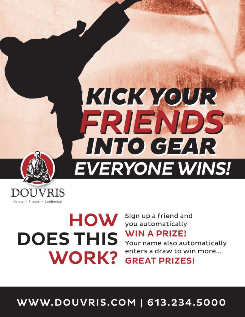 It’s a win–win for everyone — so get ready to kick your friends into gear and start earning prizes! You can pick up referral cards at the front desk at Douvris Bank Street.